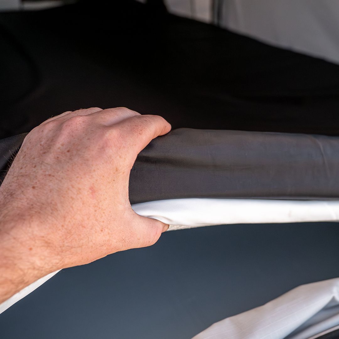 The roof top tent provides sleeping quarters off the ground, protecting you from the elements and any unwanted visitors. Spacious and comfortable, all bedding can remain inside the tent during the journey, freeing up vital storage space in the vehicle, and allowing the tent to be quickly and easily packed away.