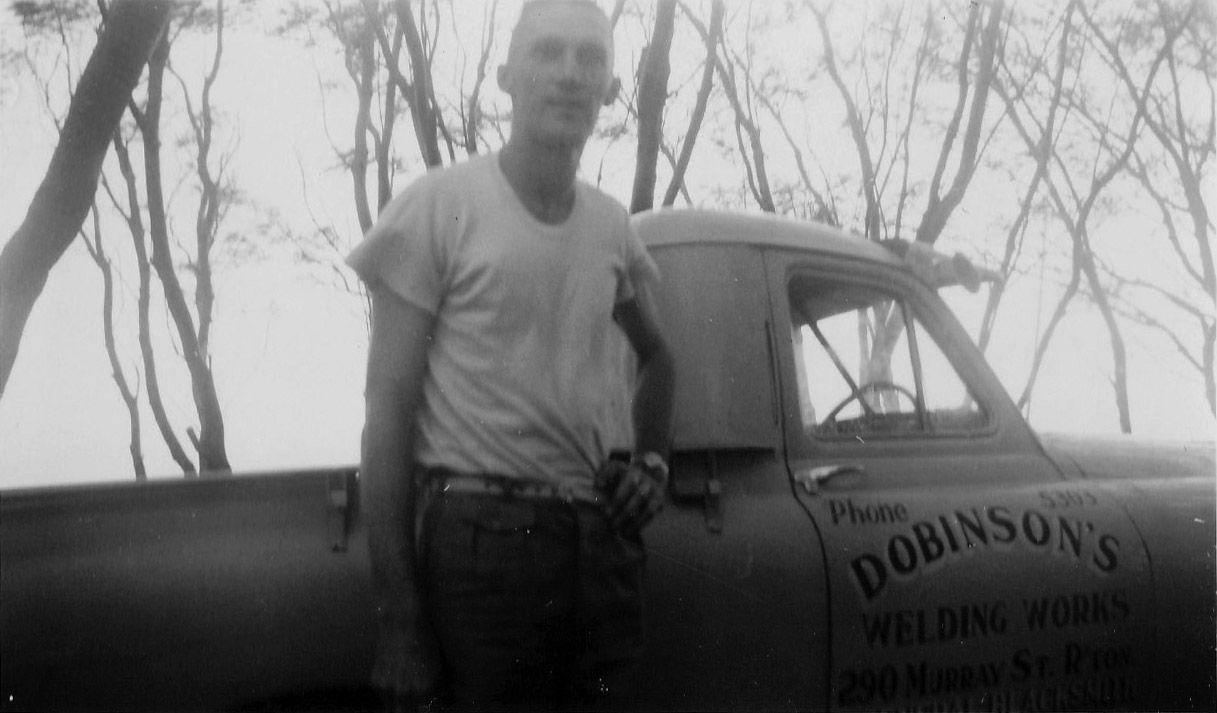 Reg Dobinson with Dobinsons Welding Works first Company Vehicle.